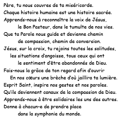 Pour continuer notre méditation tout au long de cette semaine, voici le petit feuillet, qui a été distribué avec la feuille paroissiale:
