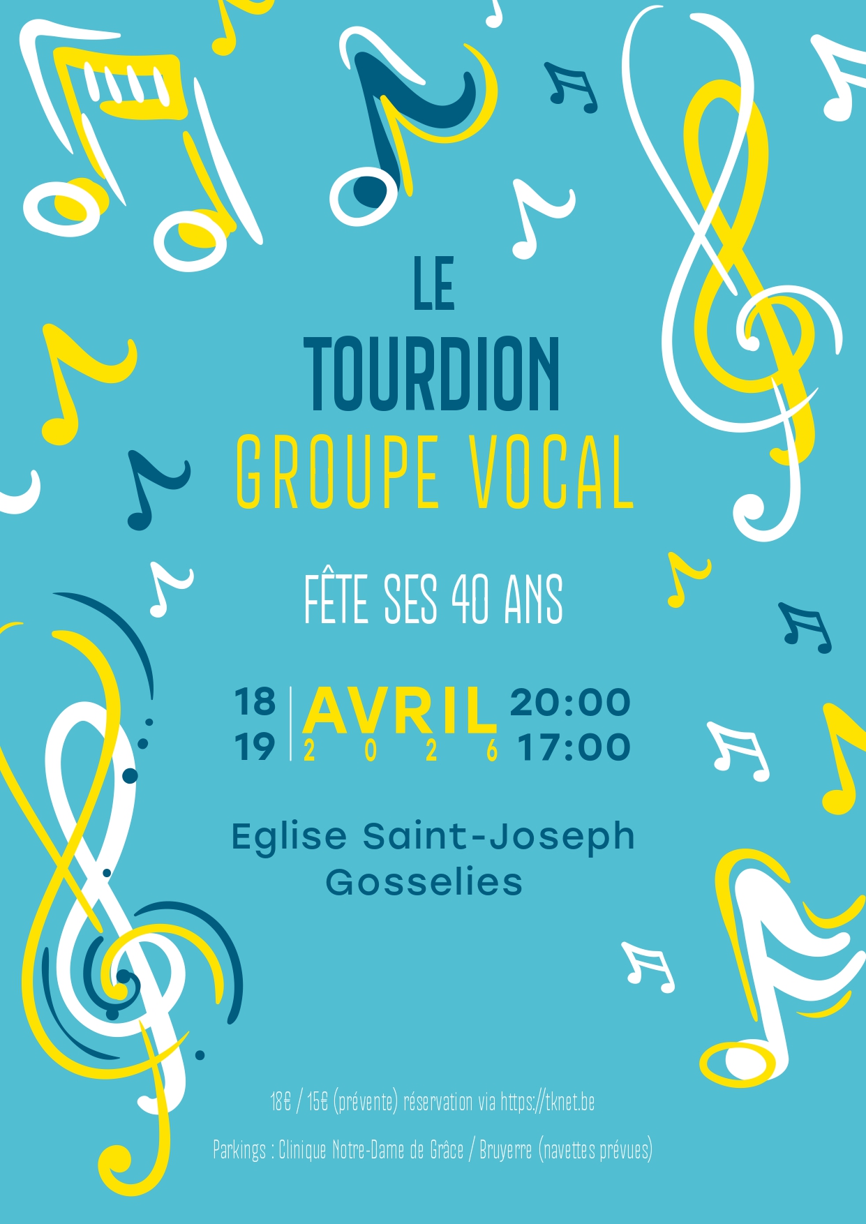 A l'occasion de ses 40 ans, le groupe vocal "Le Tourdion" propose 2 concerts dans l'église St-Joseph de Gosselies:
