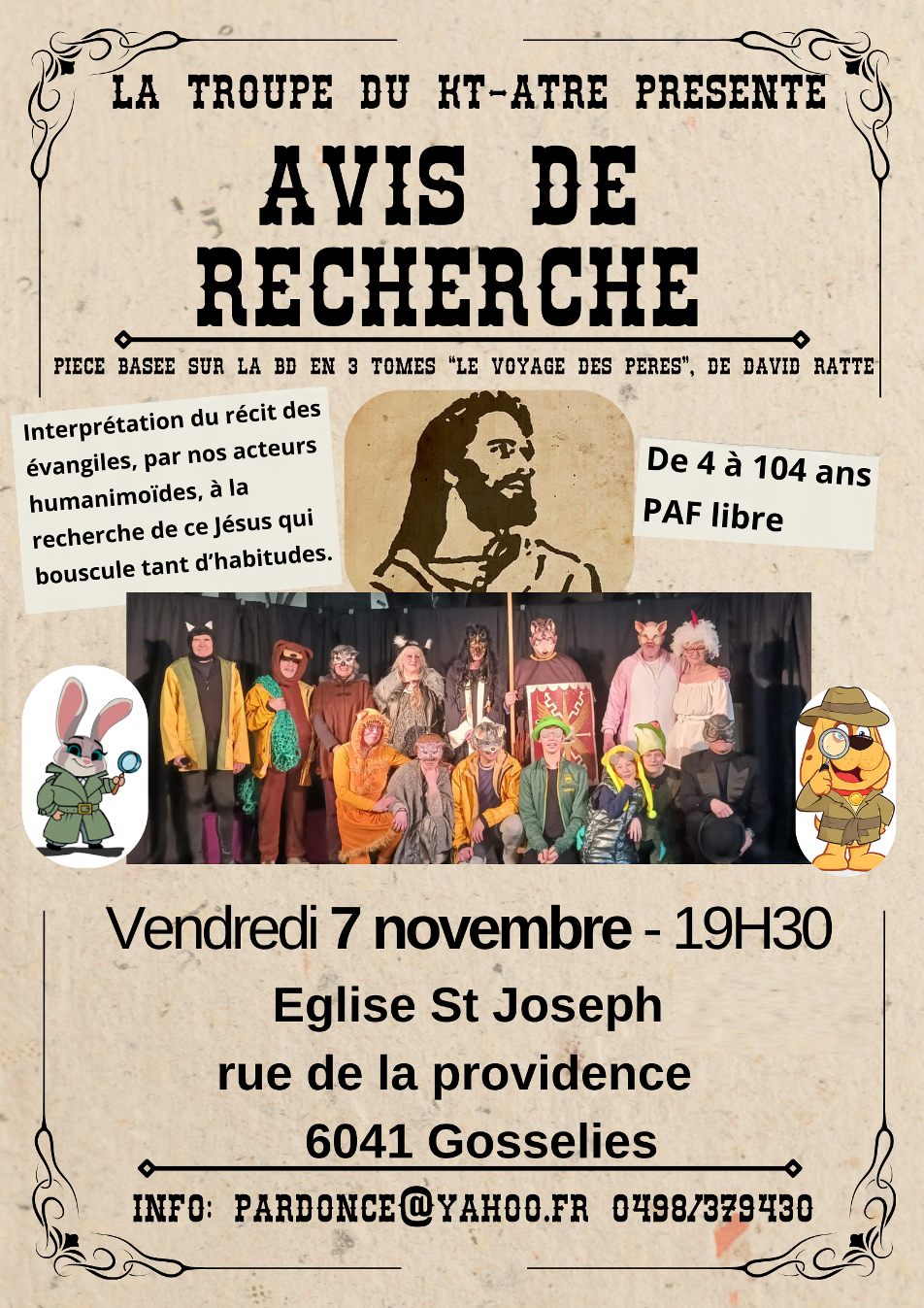 "Avis de recherche", vendredi 7 novembre à 19h30 dans l'église St Joseph (2025-10-09 14:14:54)